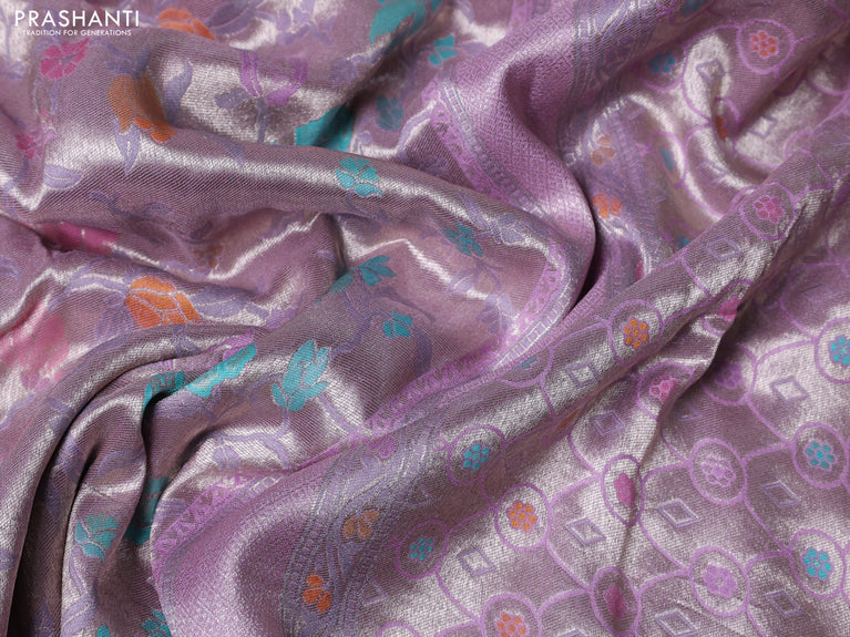 Banarasi tissue silk saree lavender with allover thread woven floral weaves and silver zari woven border
