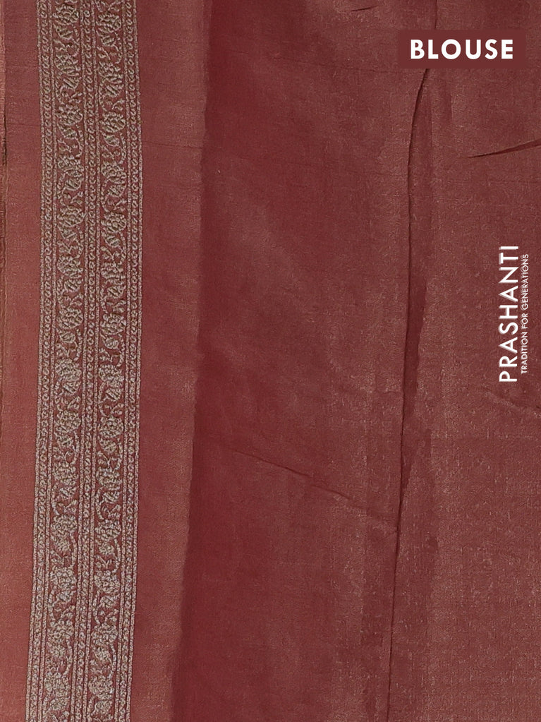 Banarasi tissue silk cotton saree sandal and pastel maroon with allover thread & zari woven butta weaves and woven border