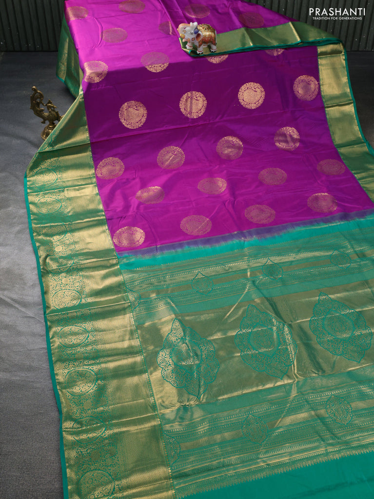 Bangalori silk saree teal blue and deep purple with zari woven buttas and zari woven border