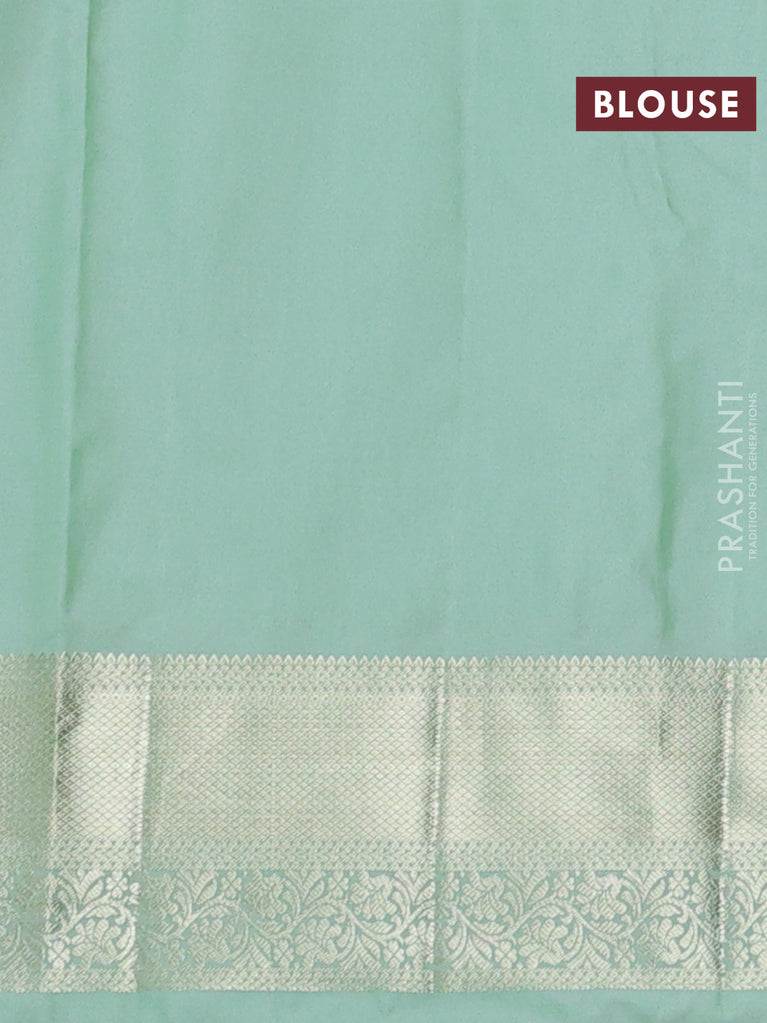 Bangalori silk saree pastel green and violet with zari woven buttas and long zari woven border
