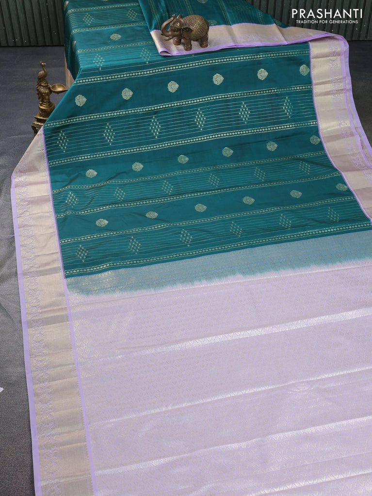 Bangalori silk saree peacock green and lavender with allover zari weaves and zari woven border