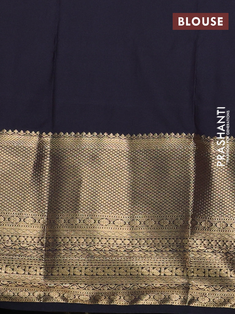 Bangalori silk saree peach orange and navy blue with zari woven buttas and long zari woven border