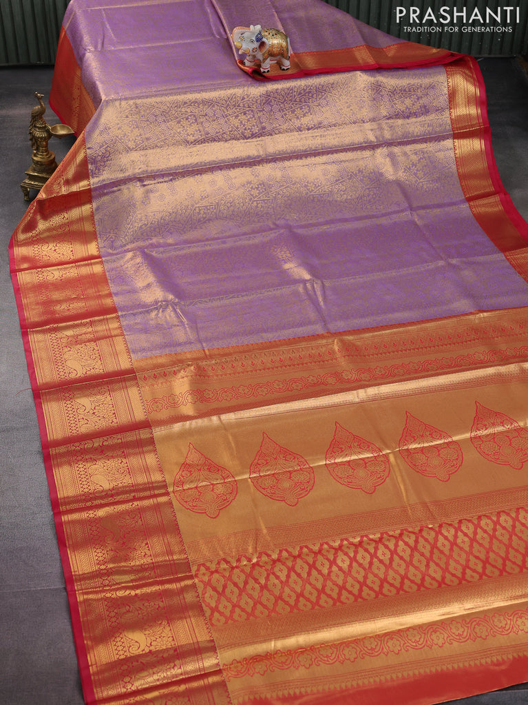 Bangalori tissue silk saree lavender and pink with allover zari woven brocade weaves and long zari woven border