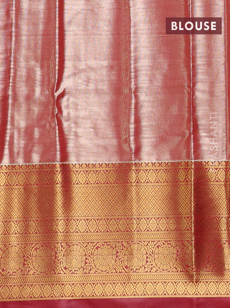 Bangalori tissue silk saree blue and reddish pink with allover zari woven brocade weaves and long zari woven border