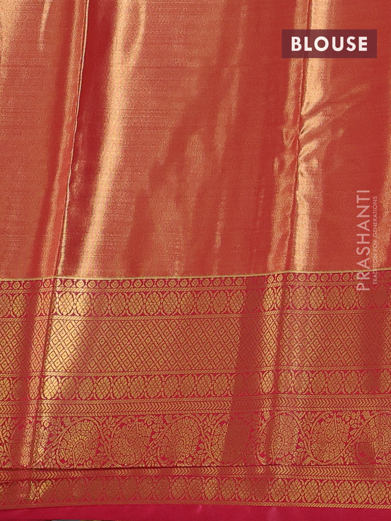Bangalori tissue silk saree peach pink and red with allover zari woven brocade weaves and long zari woven border