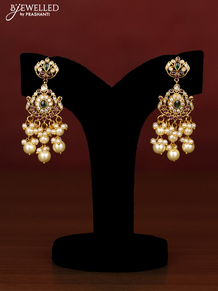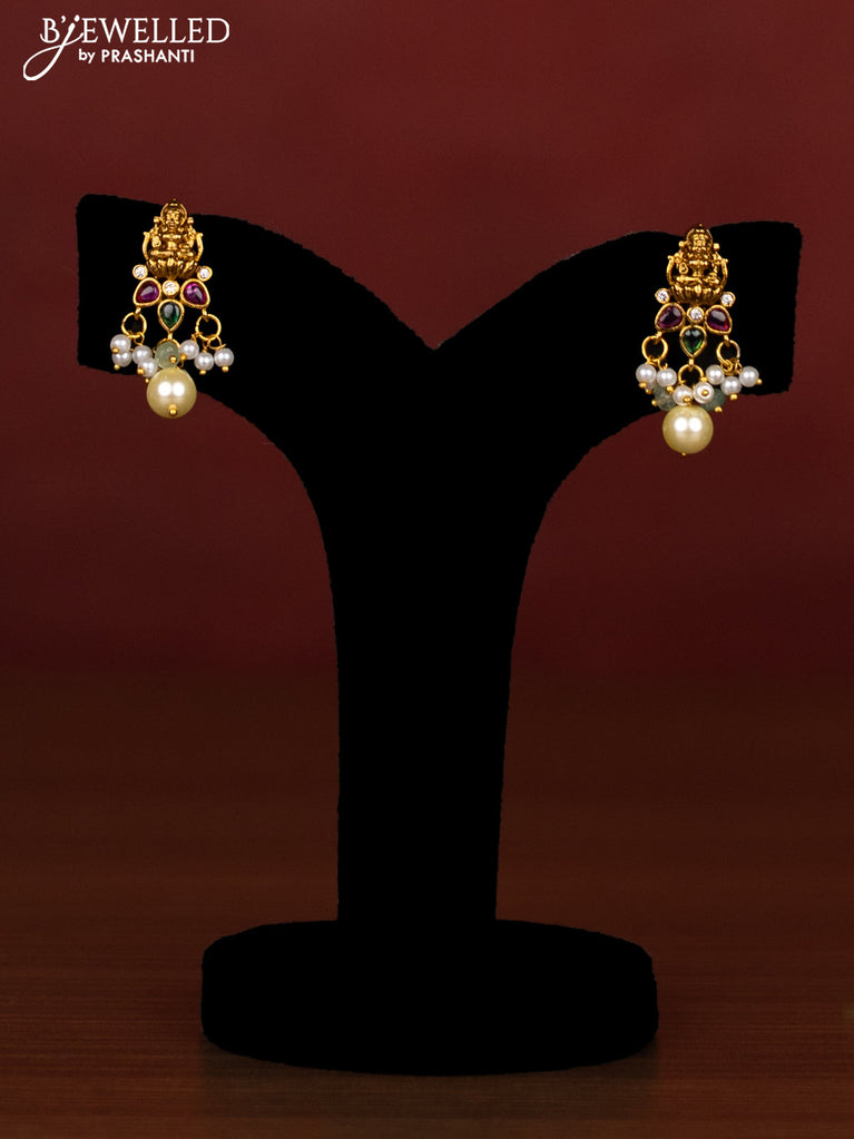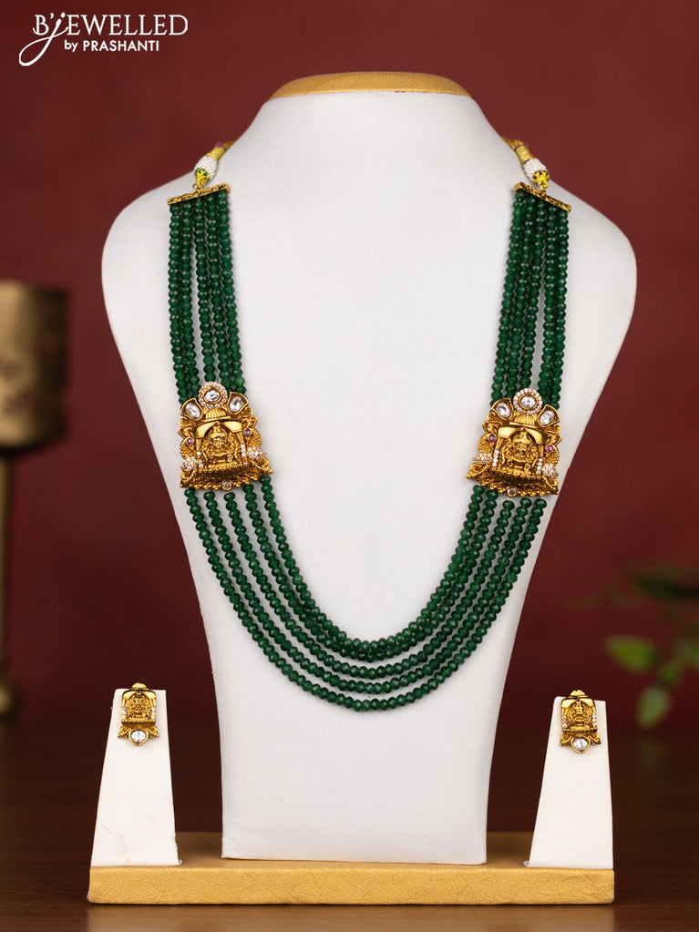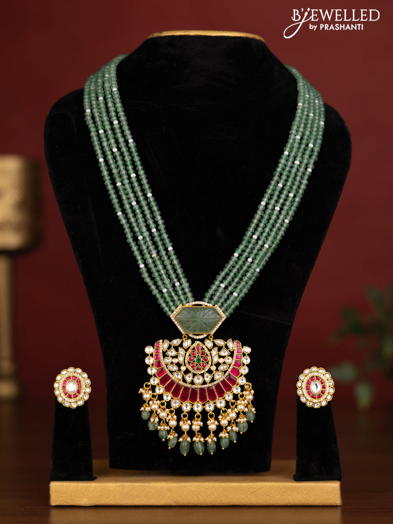 Beaded multilayer emerald necklace krishna pendant with ruby & cz stones and pearl hanging in victorian finish