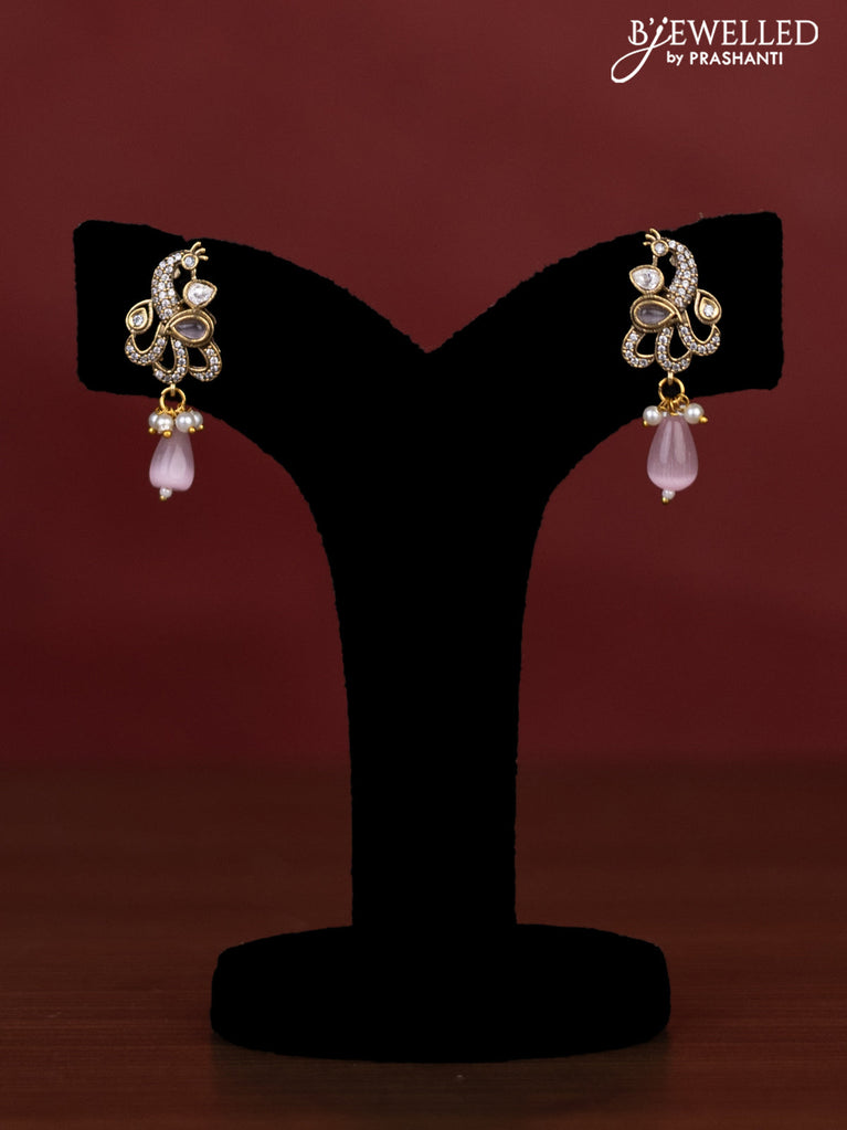 Beaded pink choker with baby pink & kundan stones and beads hanging in victorian finish
