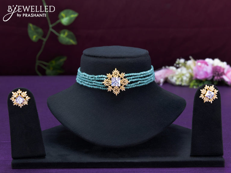 Beaded multilayer mint green necklace lakshmi design with cz stones