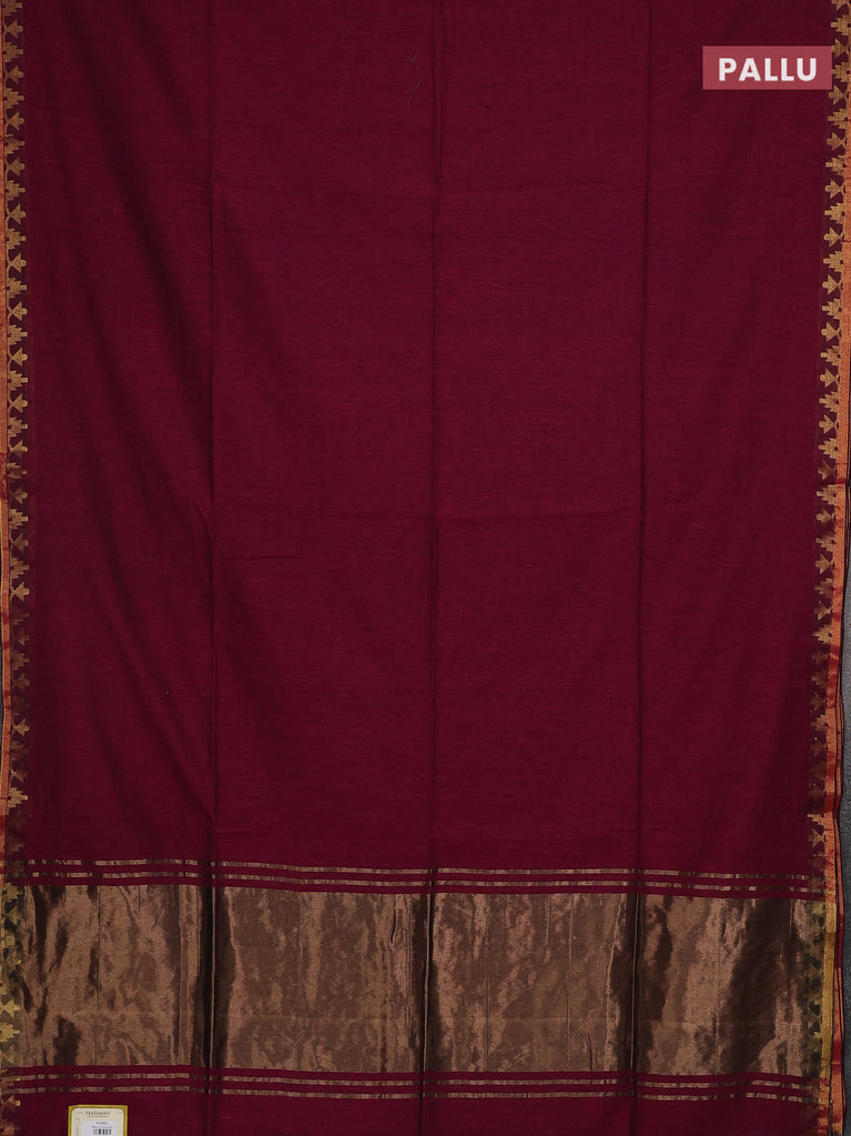 Bengal soft cotton saree dark magenta pink with plain body and zari woven border