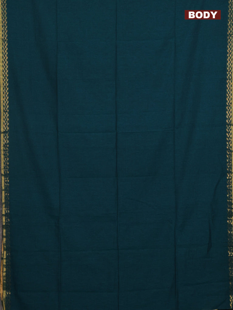 Bengal soft cotton saree peacock blue with plain body and zari woven piping border