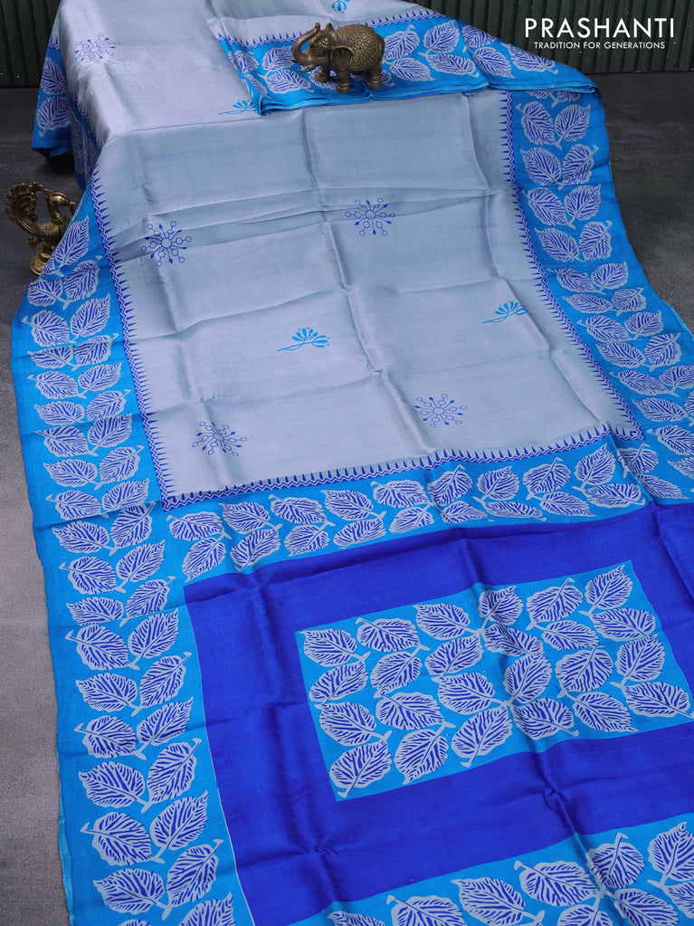 Bishnupuri silk saree pastel greyish blue and black with butta prints and printed border