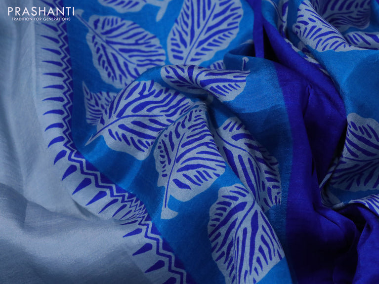 Bishnupuri silk saree pastel blue and cs blue with butta prints and leaf printed border