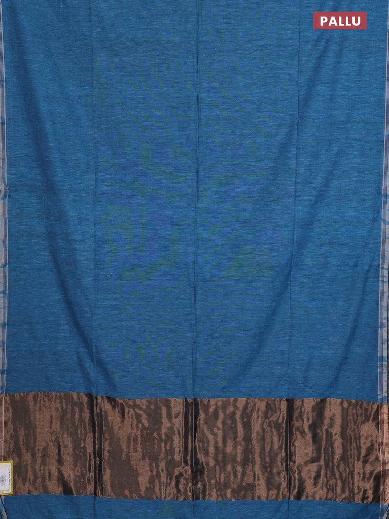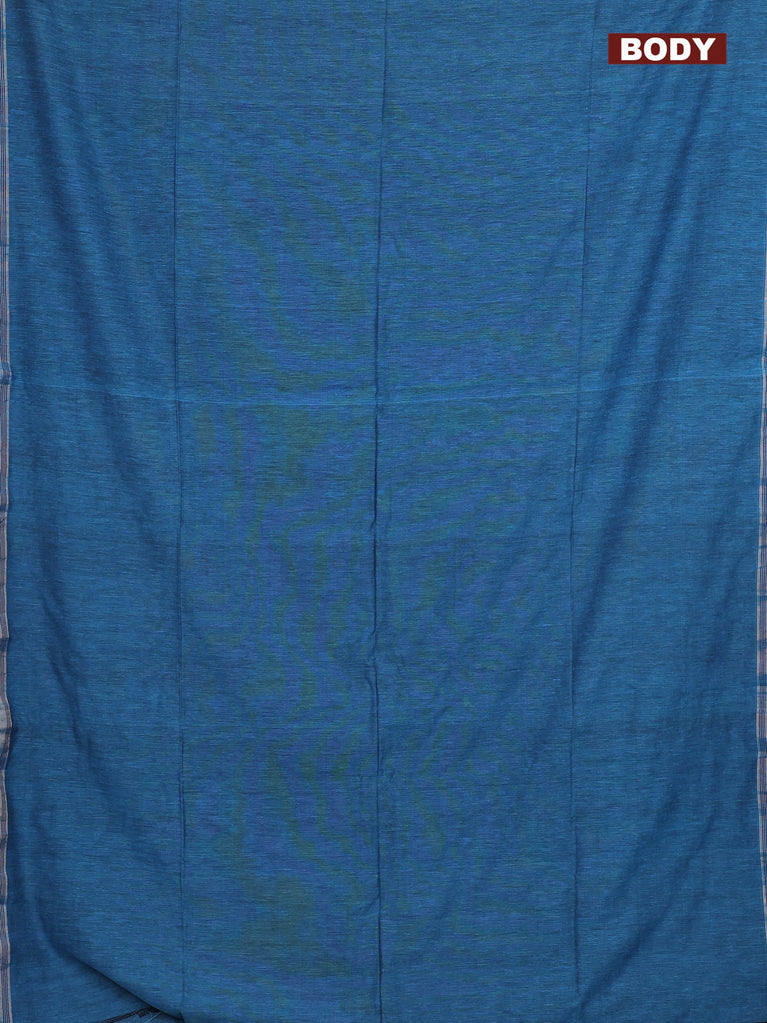 Bengal soft cotton saree teal blue shade with plain body and zari woven piping border