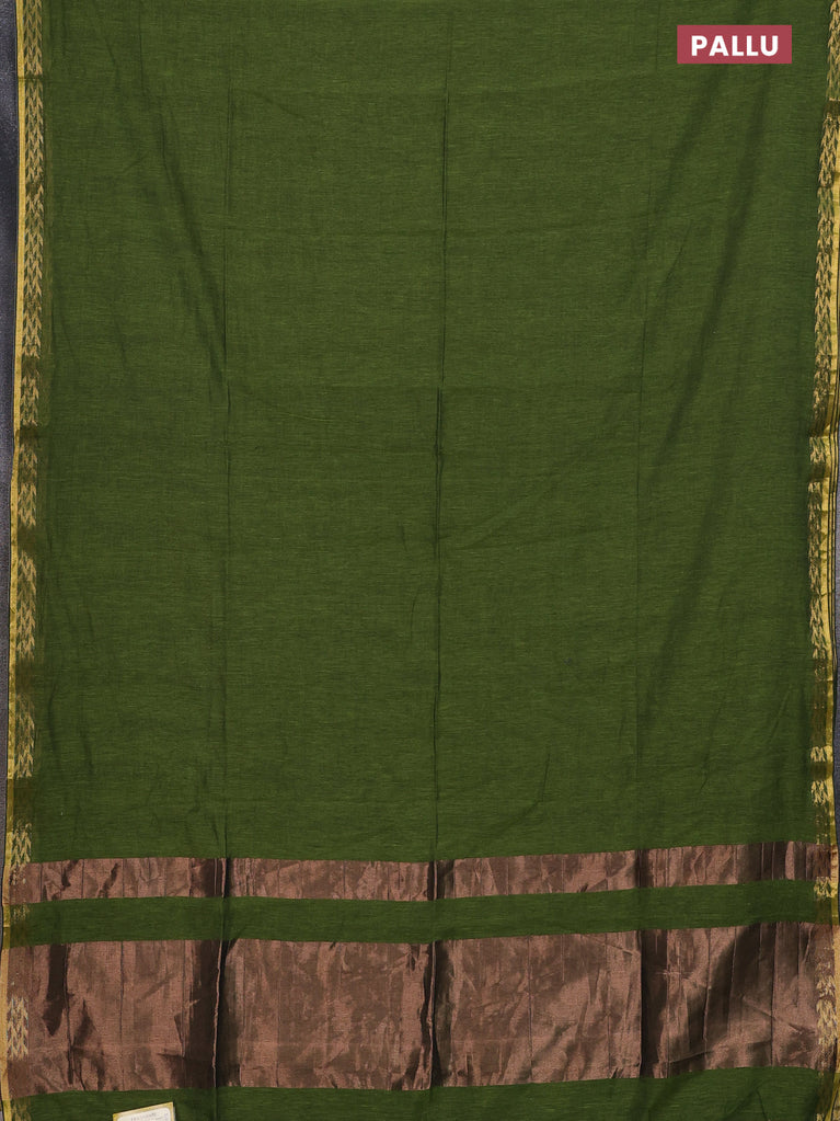 Bengal soft cotton saree teal green and sap green with plain body and zari woven border