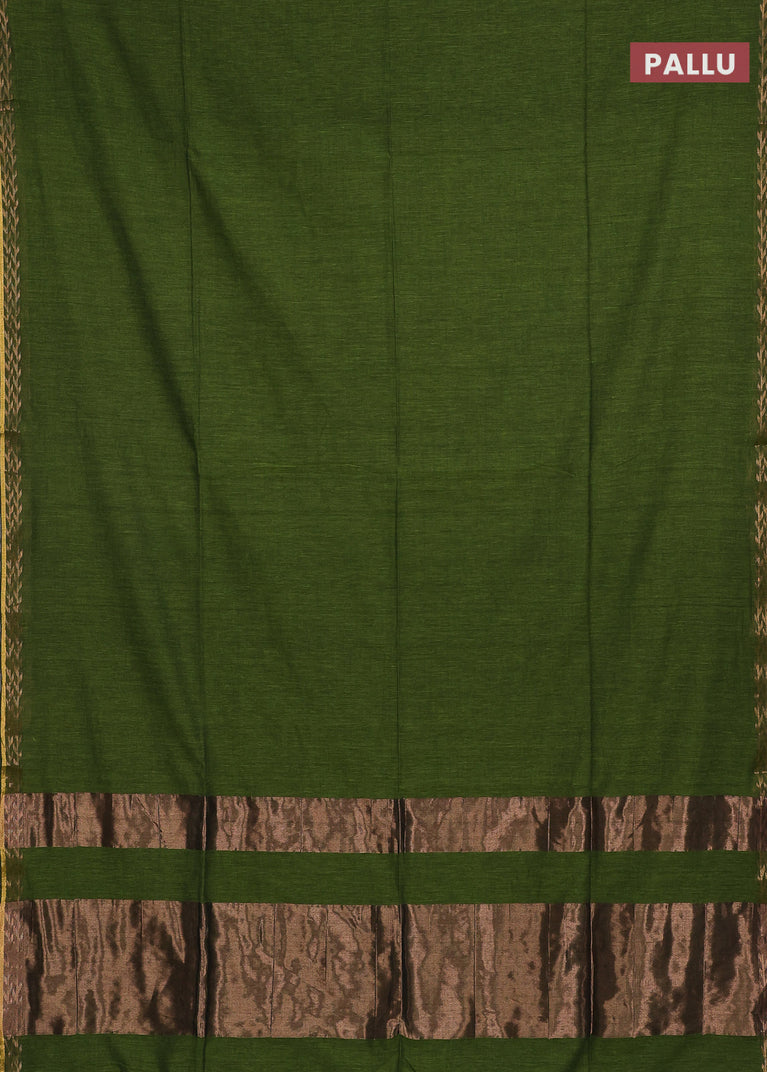 Bengal soft cotton saree sap green with plain body and zari woven border