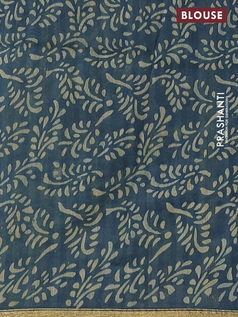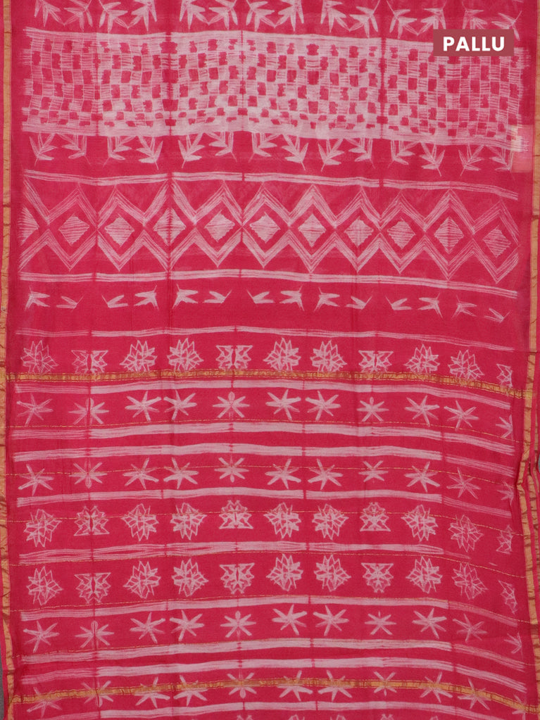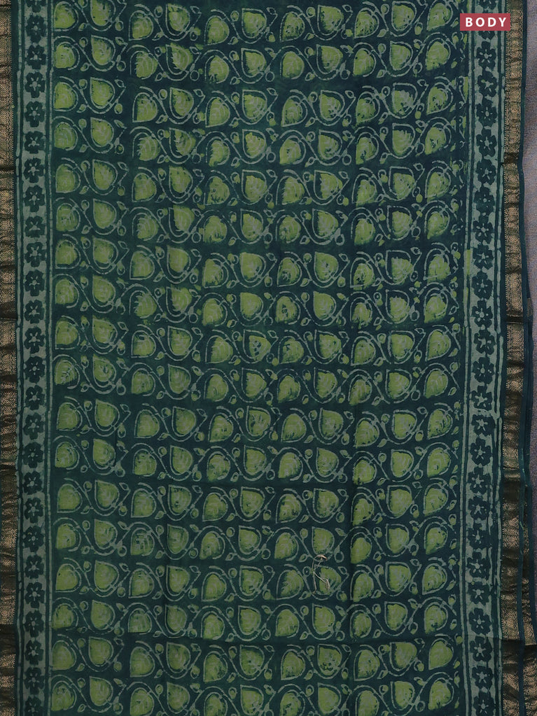 Chanderi bagru saree peacock green with allover prints and mageshwari border