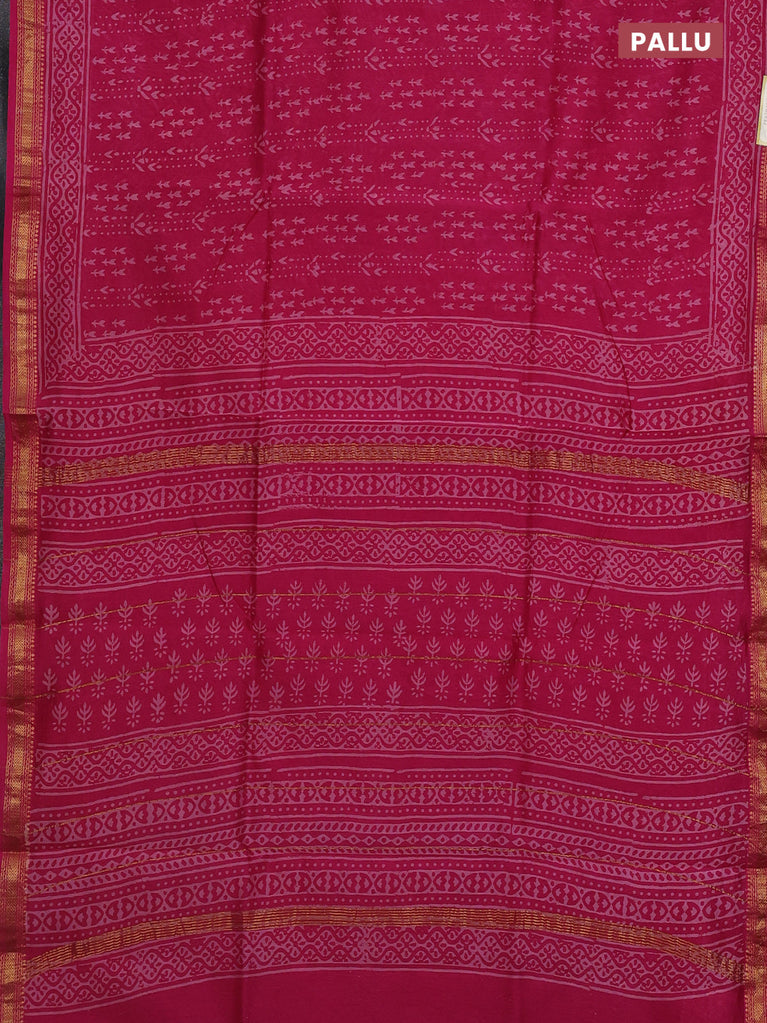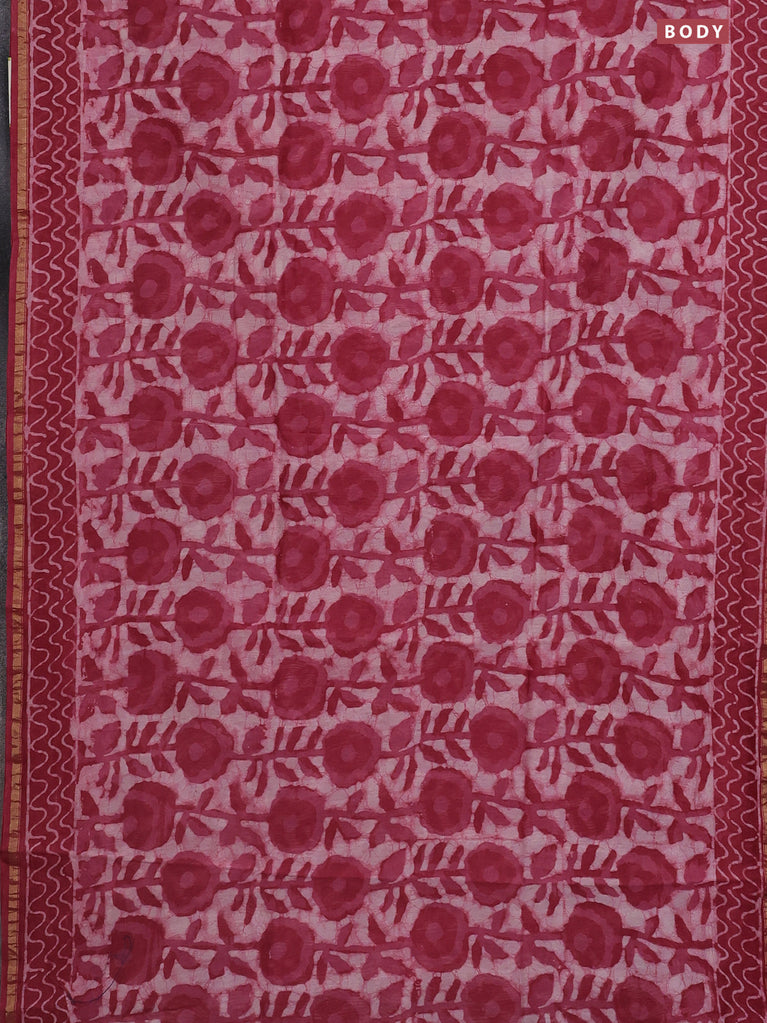 Chanderi bagru saree pink with allover prints and small zari woven border