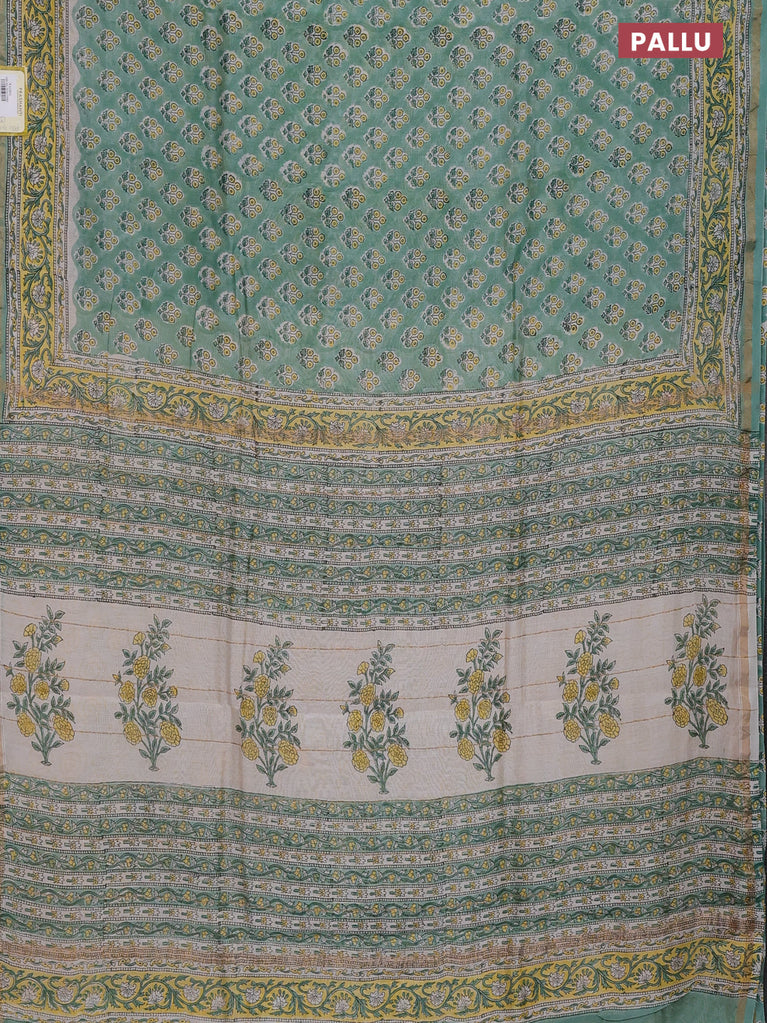 Chanderi bagru saree sap green with butta prints and small zari woven border