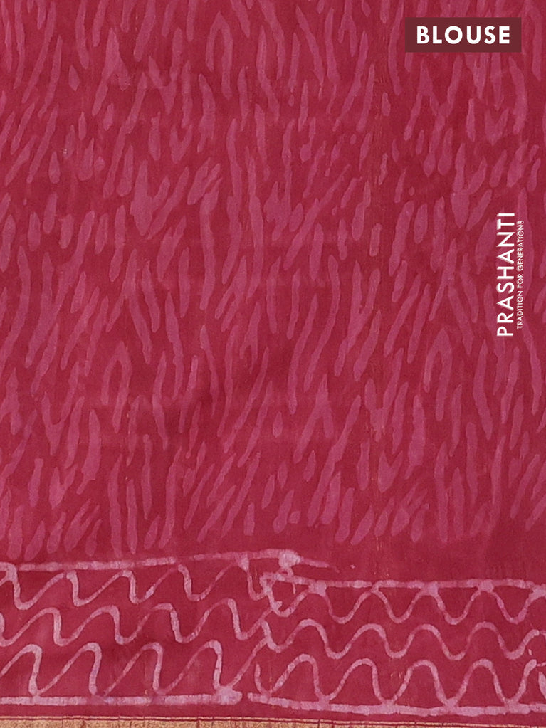 Chanderi bagru saree pastel maroon with allover prints and small zari woven border