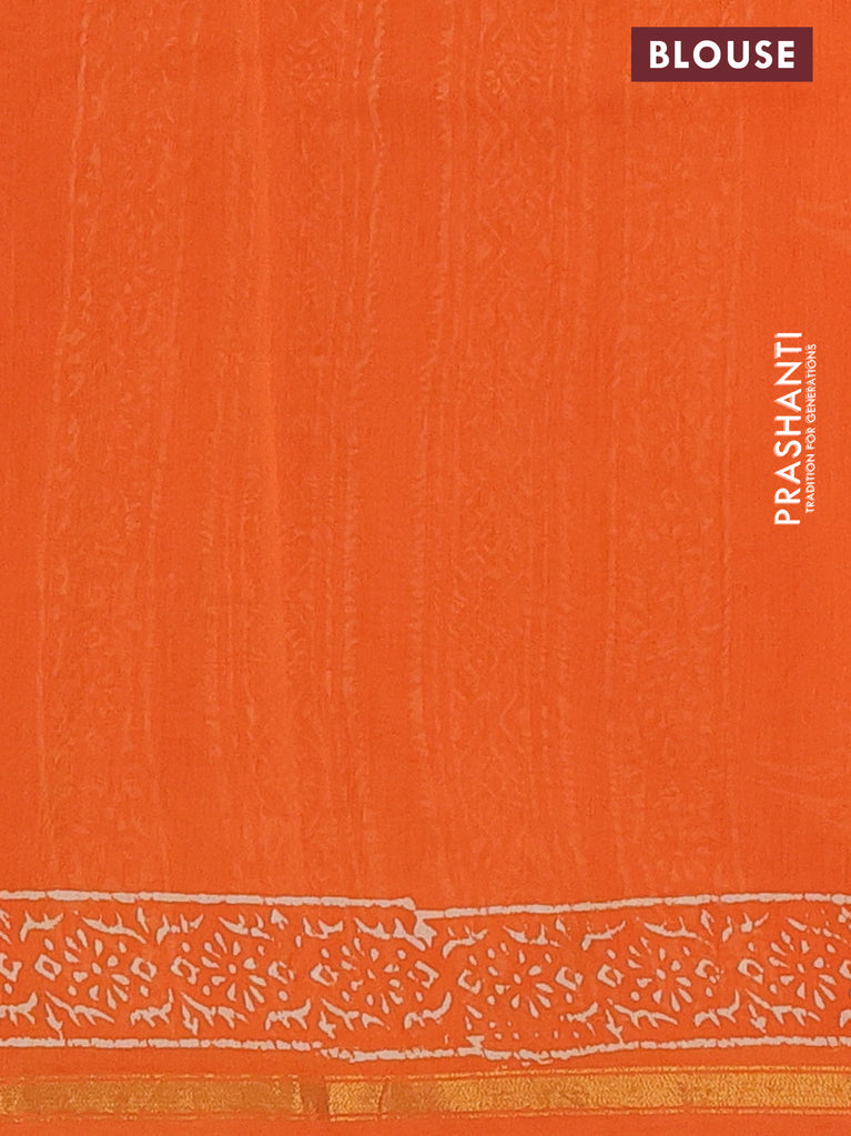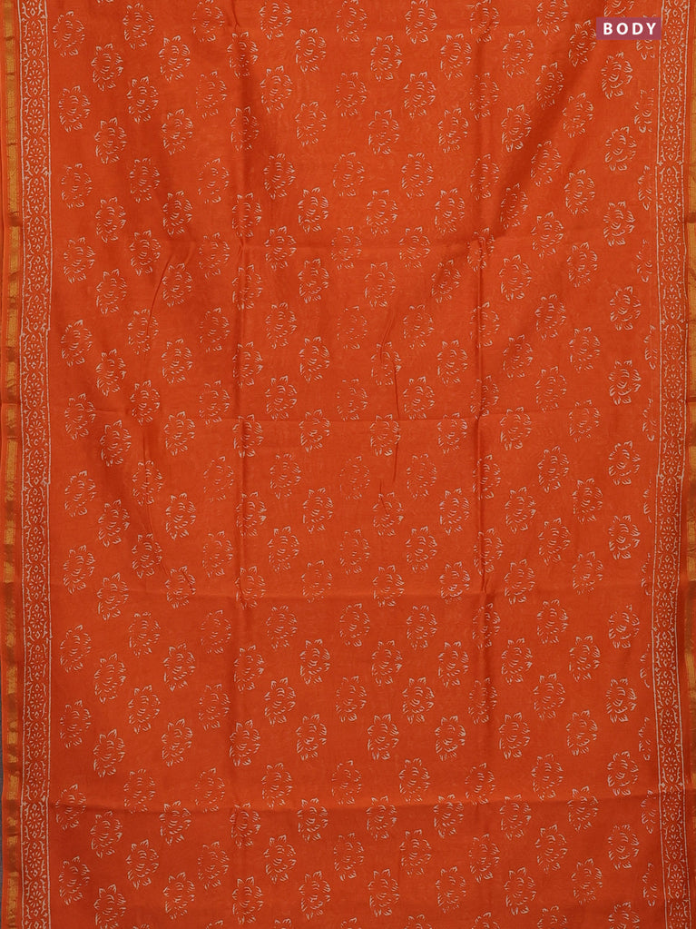 Chanderi bagru saree orange with allover dfloral butta prints and small zari woven border