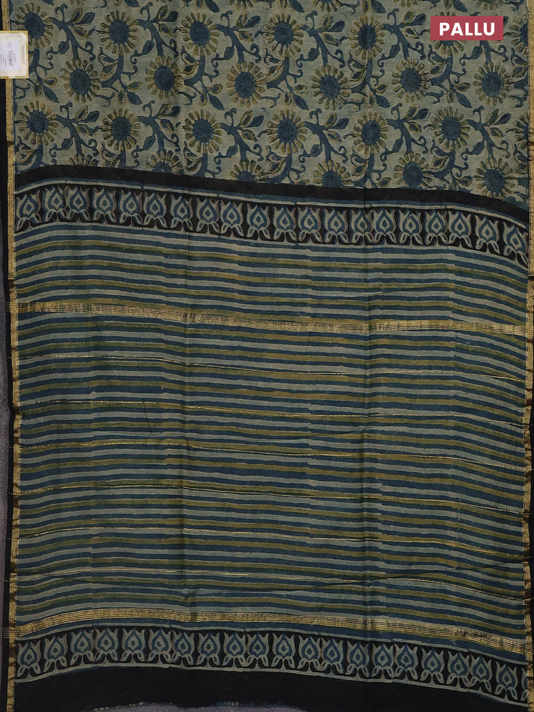Chanderi bagru saree sap green and black with allover butta prints and maheshwari border