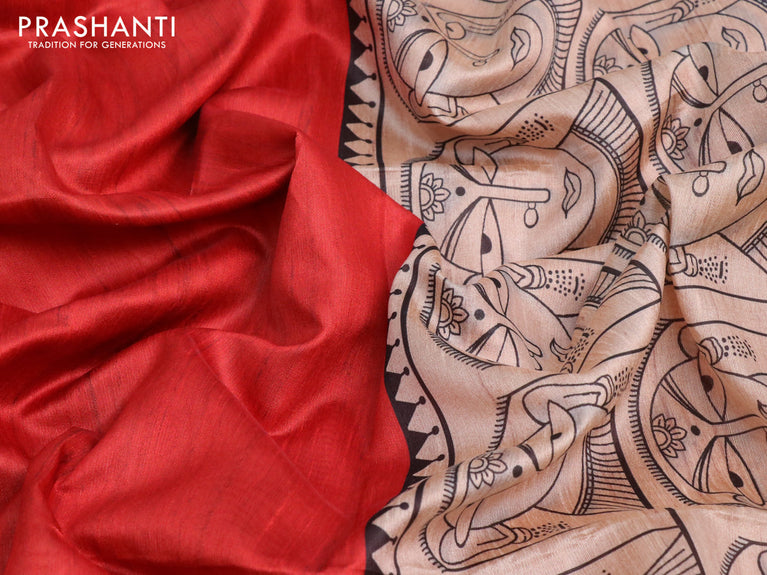 Chappa saree teal blue and cream with plain body and madhubani printed border