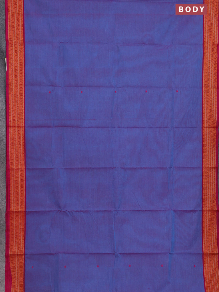Chettinad cotton saree dual shade of cs blue and dual shade of maroon with thread woven buttas and thread woven simple border