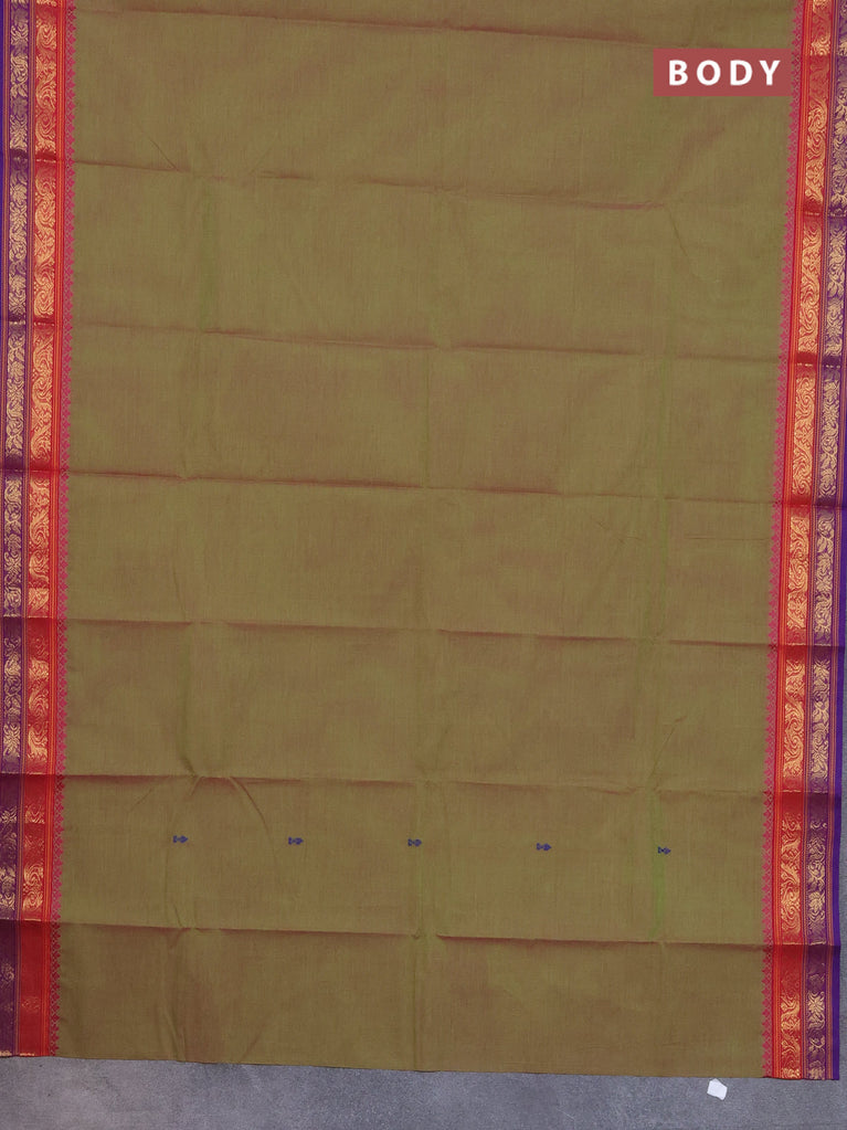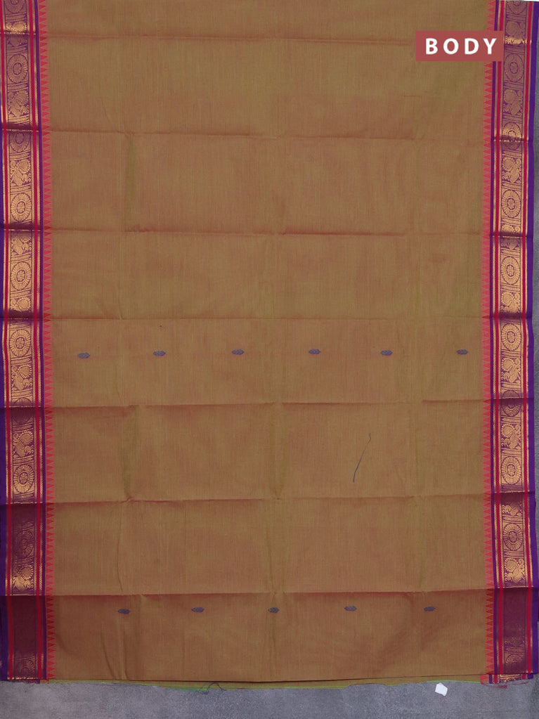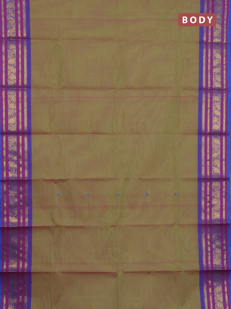 Chettinad cotton saree dual shade of bluish mustard and purple with thread woven buttas and thread woven border