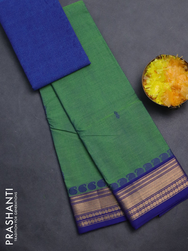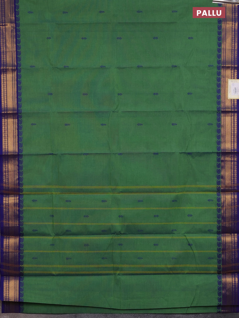 Chettinad cotton saree dual shade of green and cs blue with thread woven buttas and thread & zari woven border