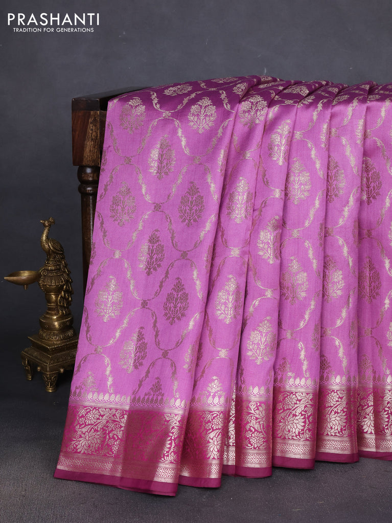 Chiniya silk saree mauve pink and wine shade with allover zari weaves and zari woven border