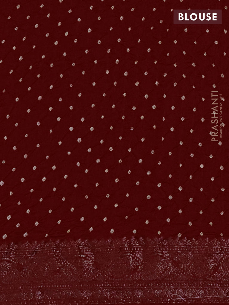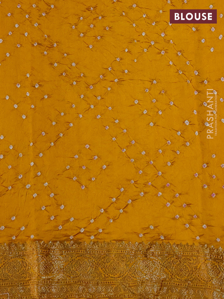 Chiniya silk saree mustard yellow and maroon with allover zari buttas & bandhini prints and zari woven border