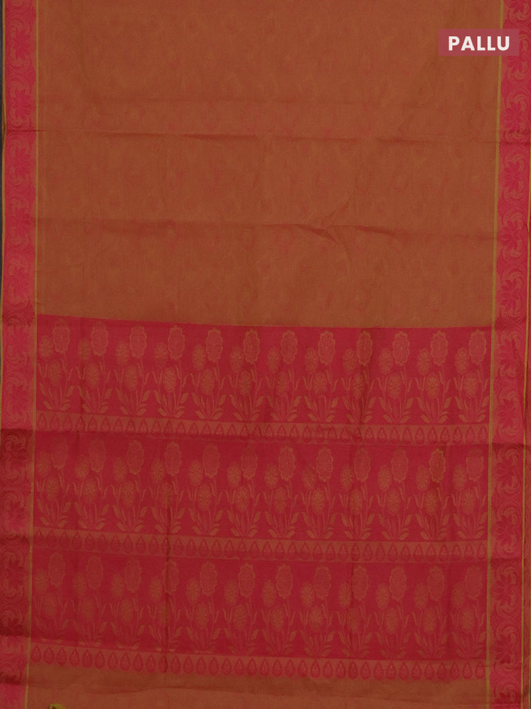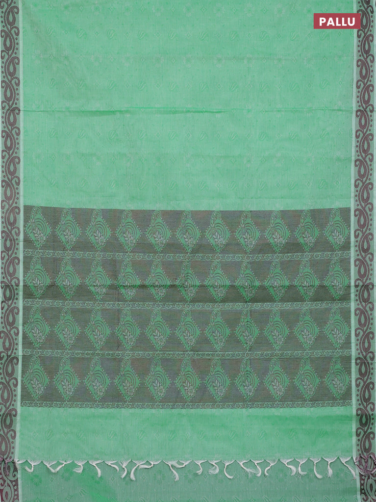 Coimbatore cotton saree green and sandal with allover self emboss and thread woven border