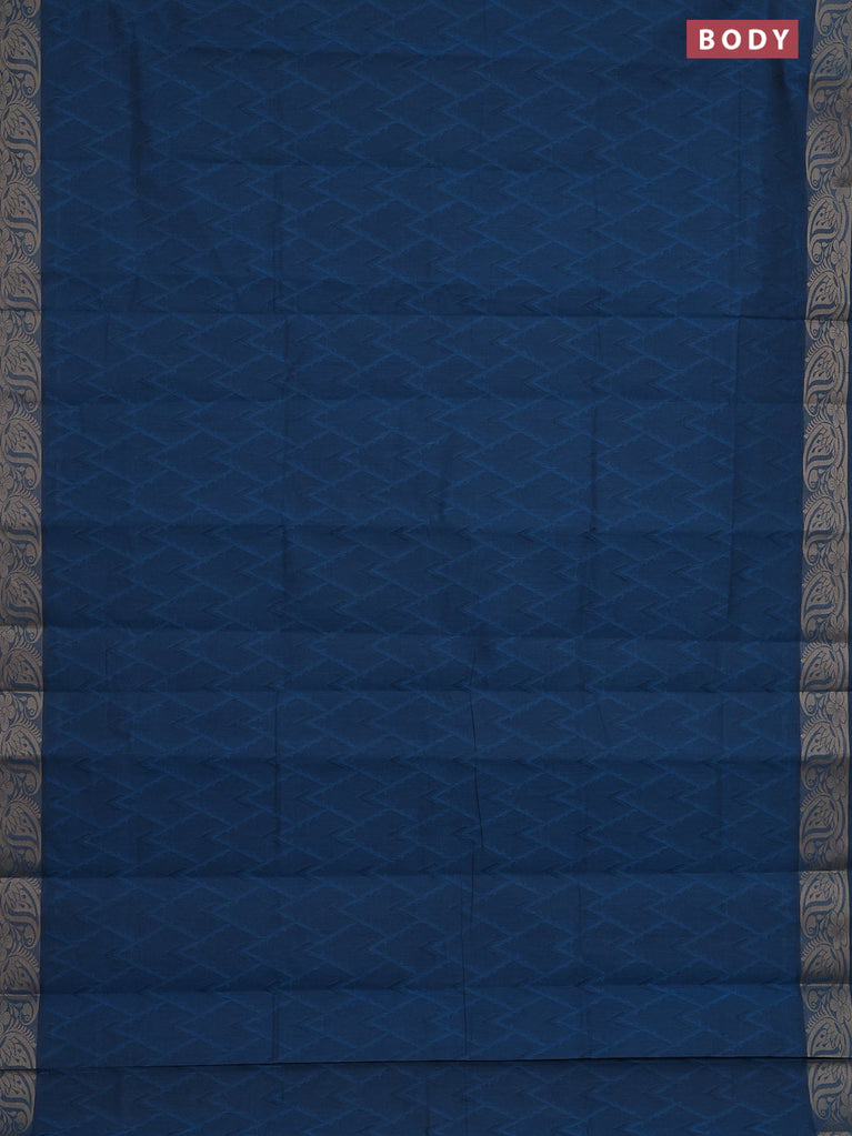 Coimbatore cotton saree peacock blue and sandal with allover self emboss and thread woven border