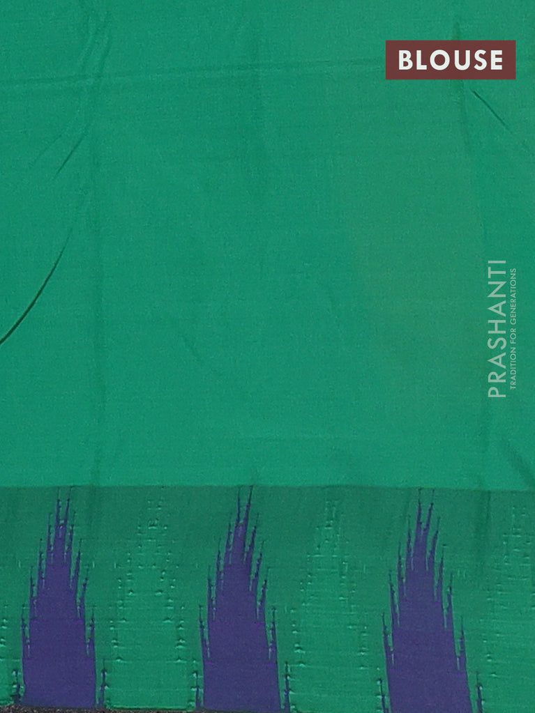 Arani semi silk saree mango yellow and dual shade of green with plain body and temple design border