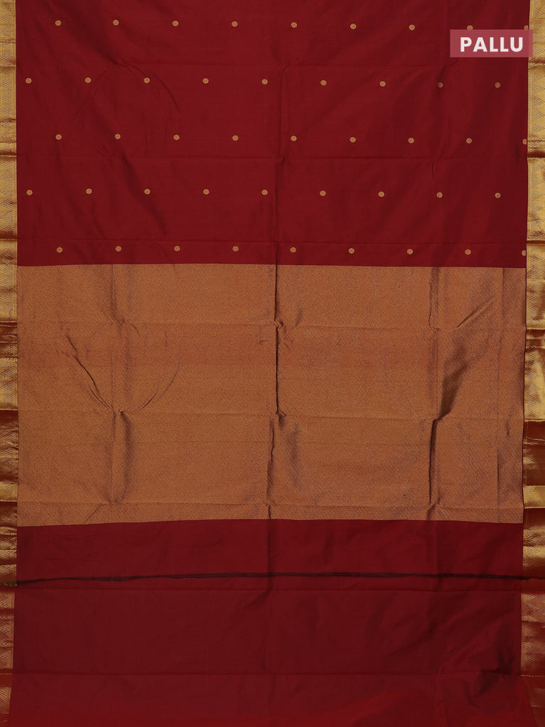 Arani semi silk saree maroon with zari woven buttas in borderless style