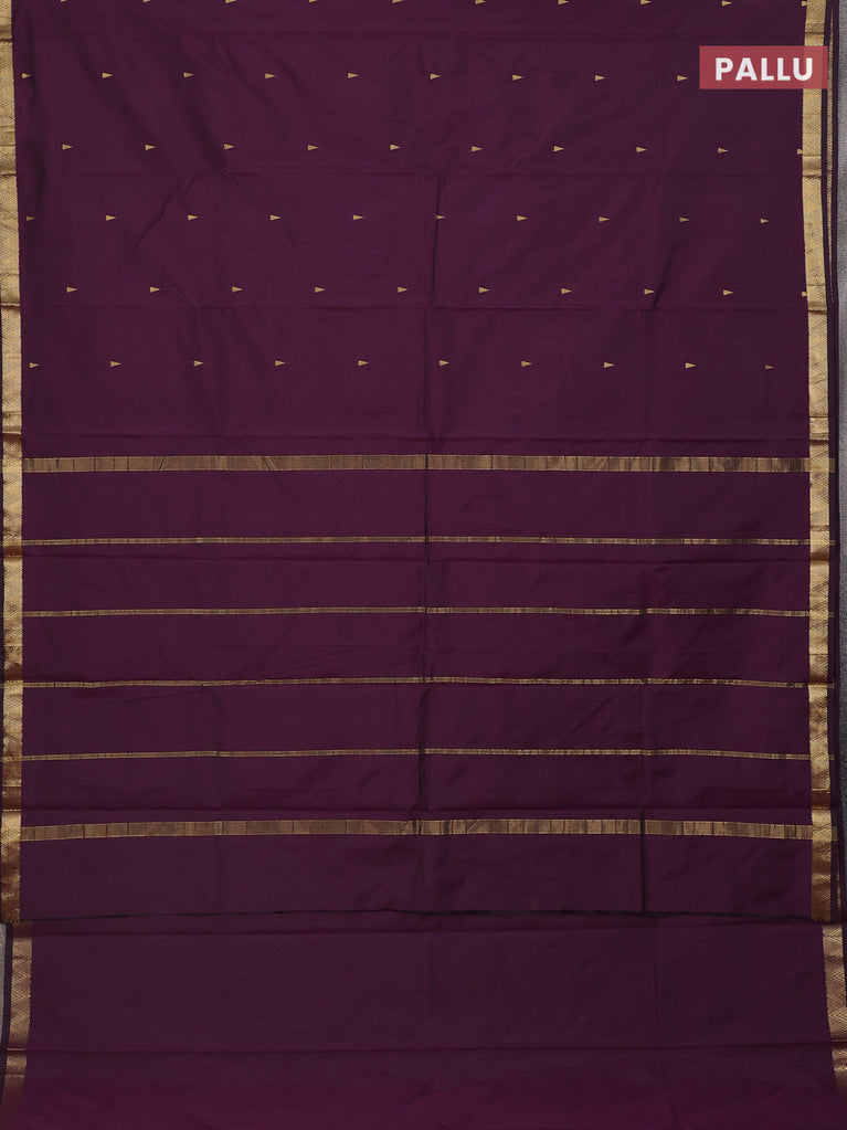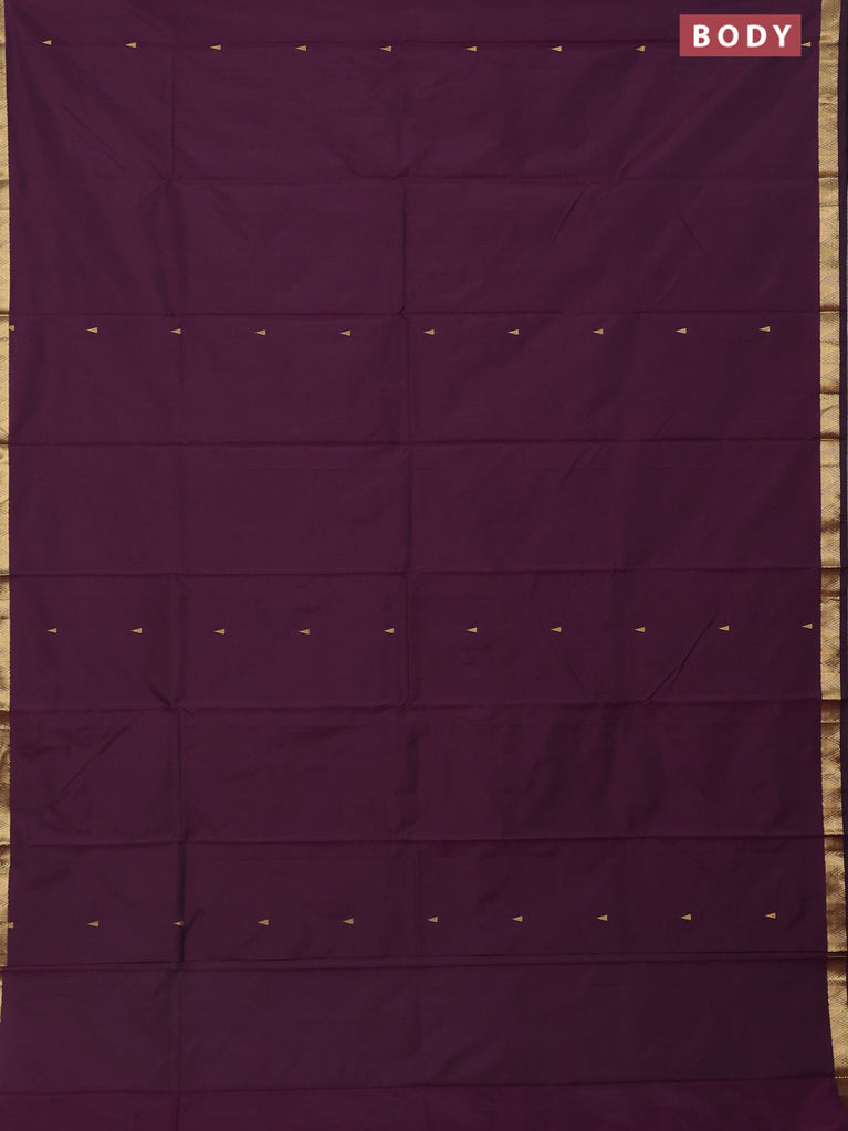 Arani semi silk saree wine shade with silver zari woven buttas in borderless style