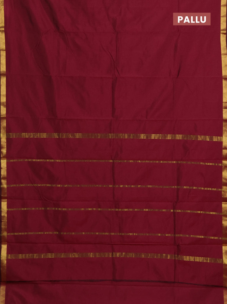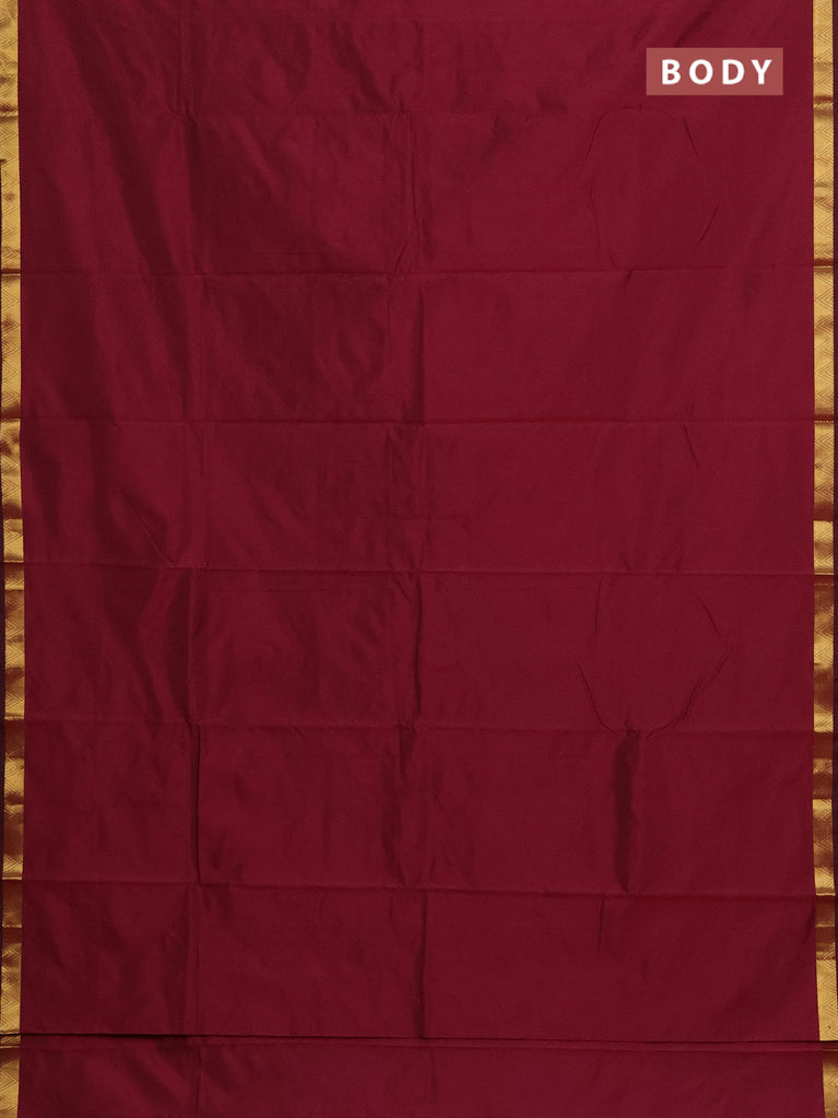 Arani semi silk saree wine shade with plain body and zari woven border