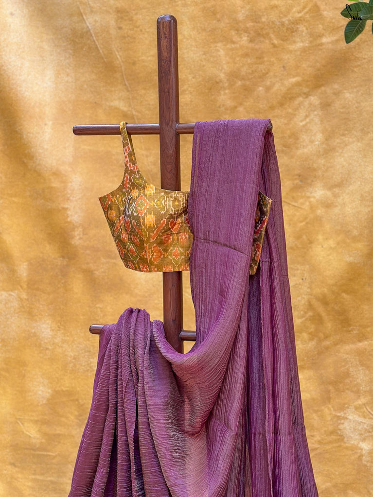 Aurum, a golden masterpiece, is made from opulent chanderi cotton silk. This saree is complemented by a matching lining that eliminates the need for an underskirt, while adjustable loops and a chic pocket provide comfort and ease. Ready to shine in under 30 seconds, Aurum is perfect for any occasion.