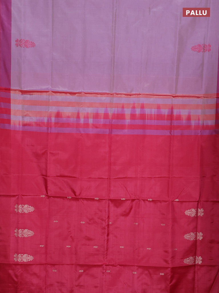Banana pith saree pastel lavender and dark pink with thread woven buttas and contrast border