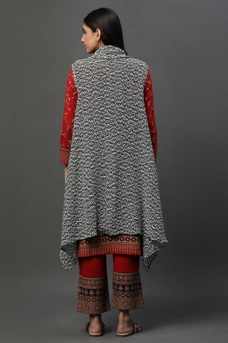 Capture The Gaze Of Every With This Enchanting Black and White Sleeve Less Round neck kurta