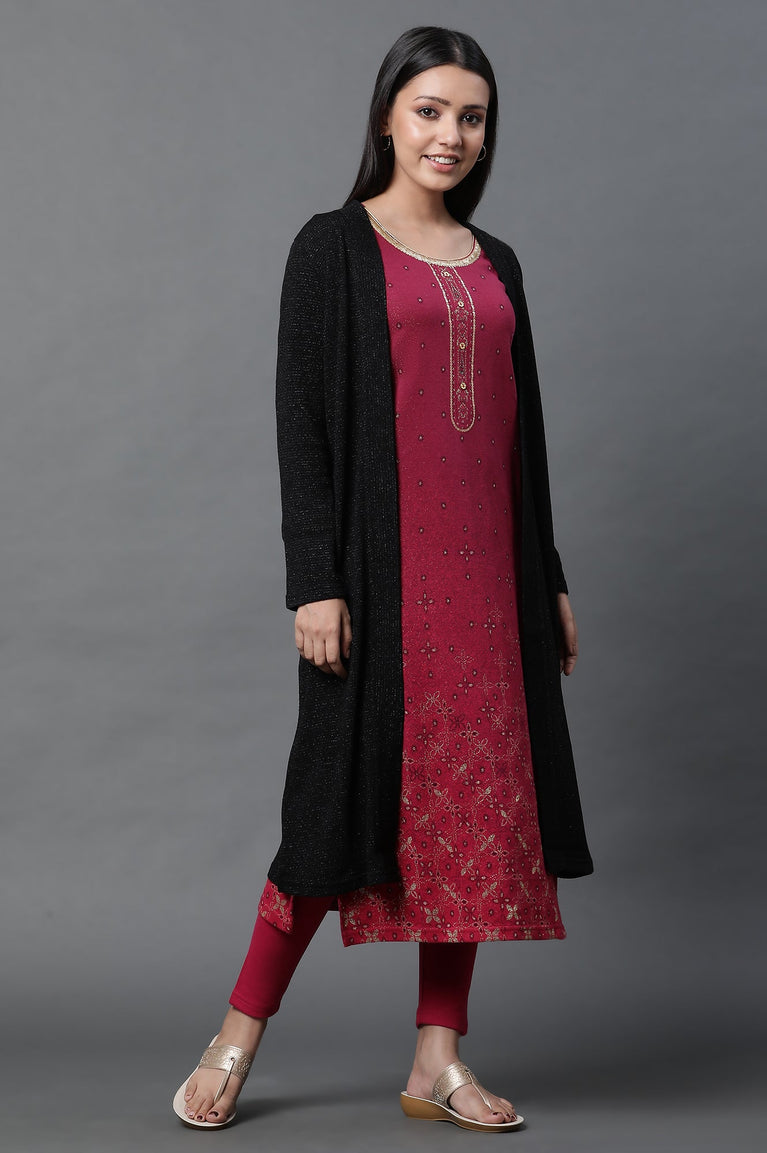 Weave a all new style story this winter with this black and white round neck full sleeve kurta.
