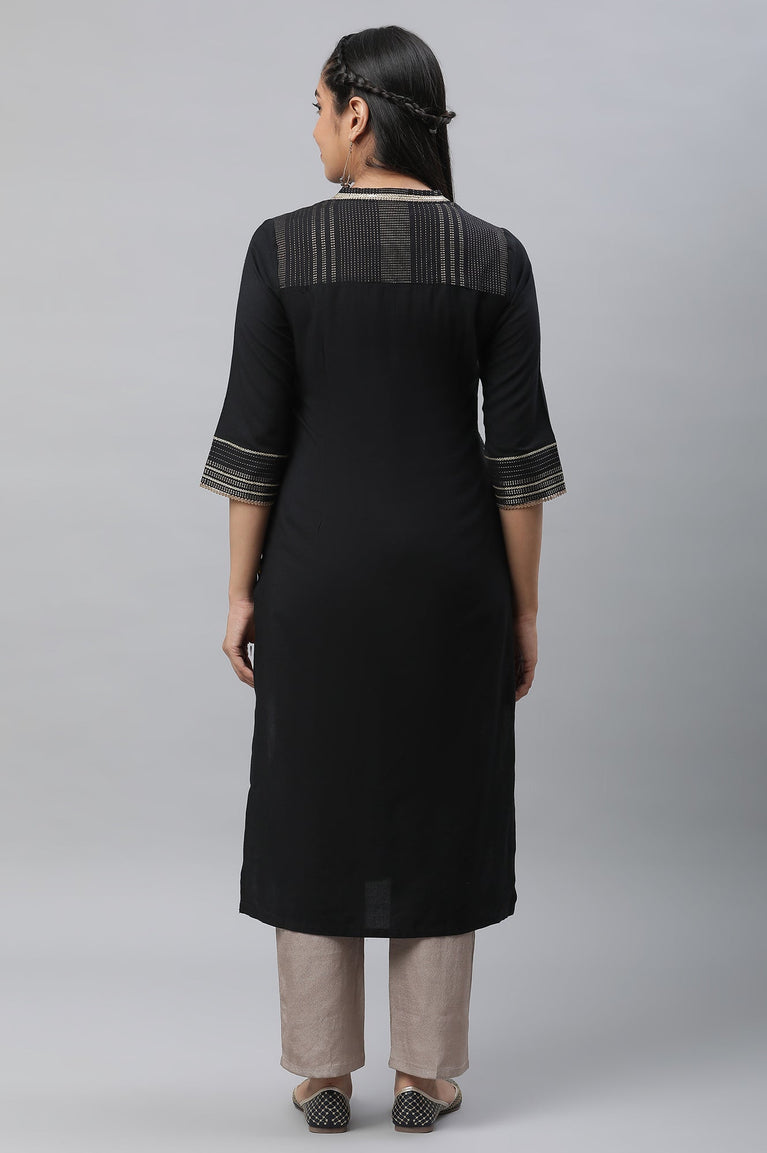Black Zari Embroidered and Sequins Viscose Blend Straight Kurta and Palazzo Set