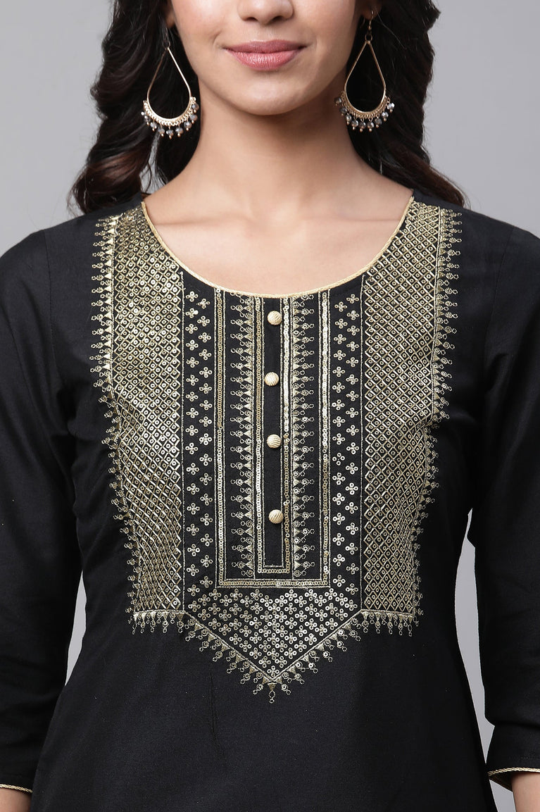 Black Zari Embroidery with Sequins Straight Kurta and Palazzo Set