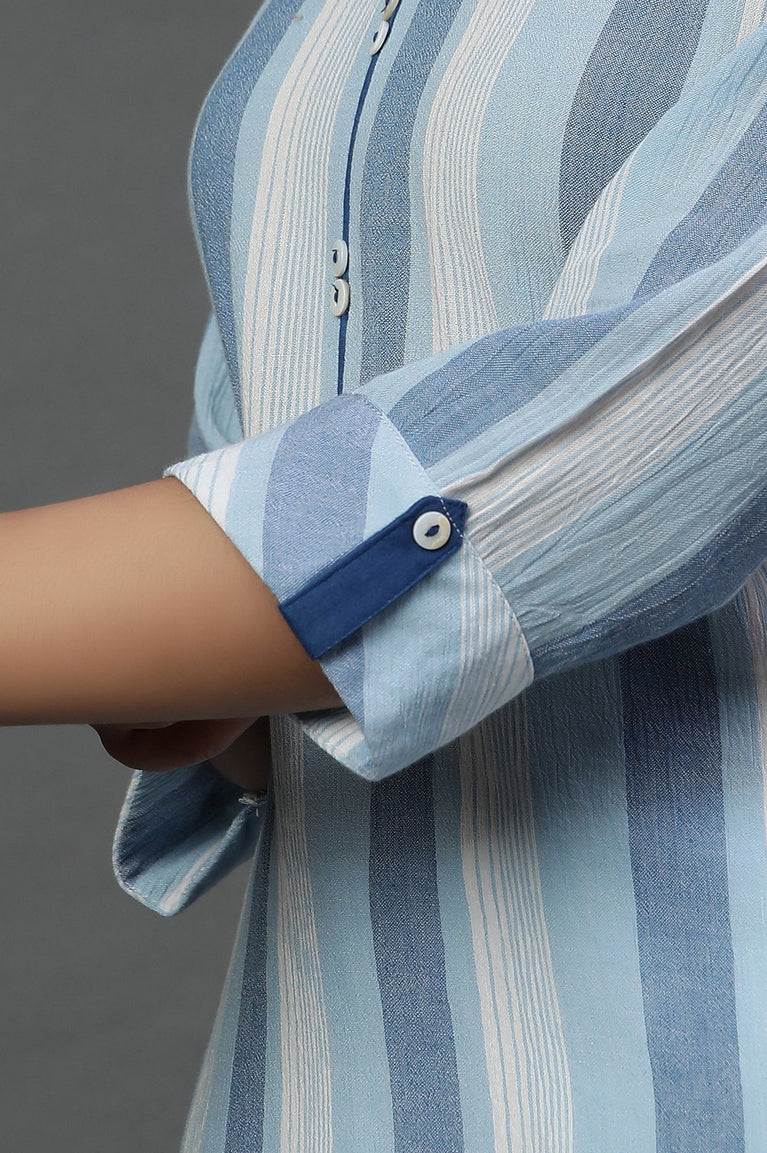 Blue and White Stripe Yarn-Dyed Casual Kurta