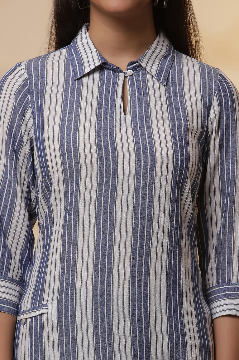 Blue and White Stripe Casual Kurta