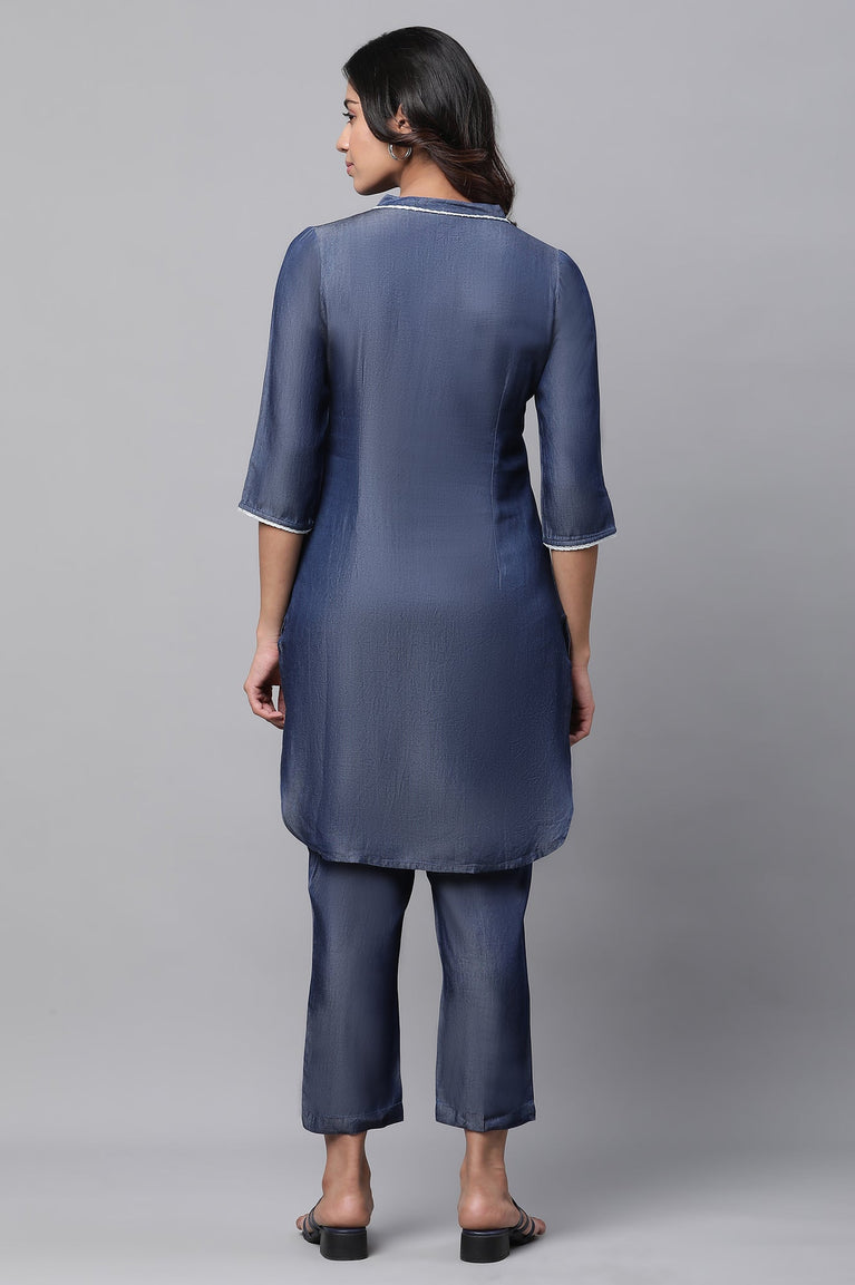 Blue Cotton Denim Kurta and Pants Co-ord Set
