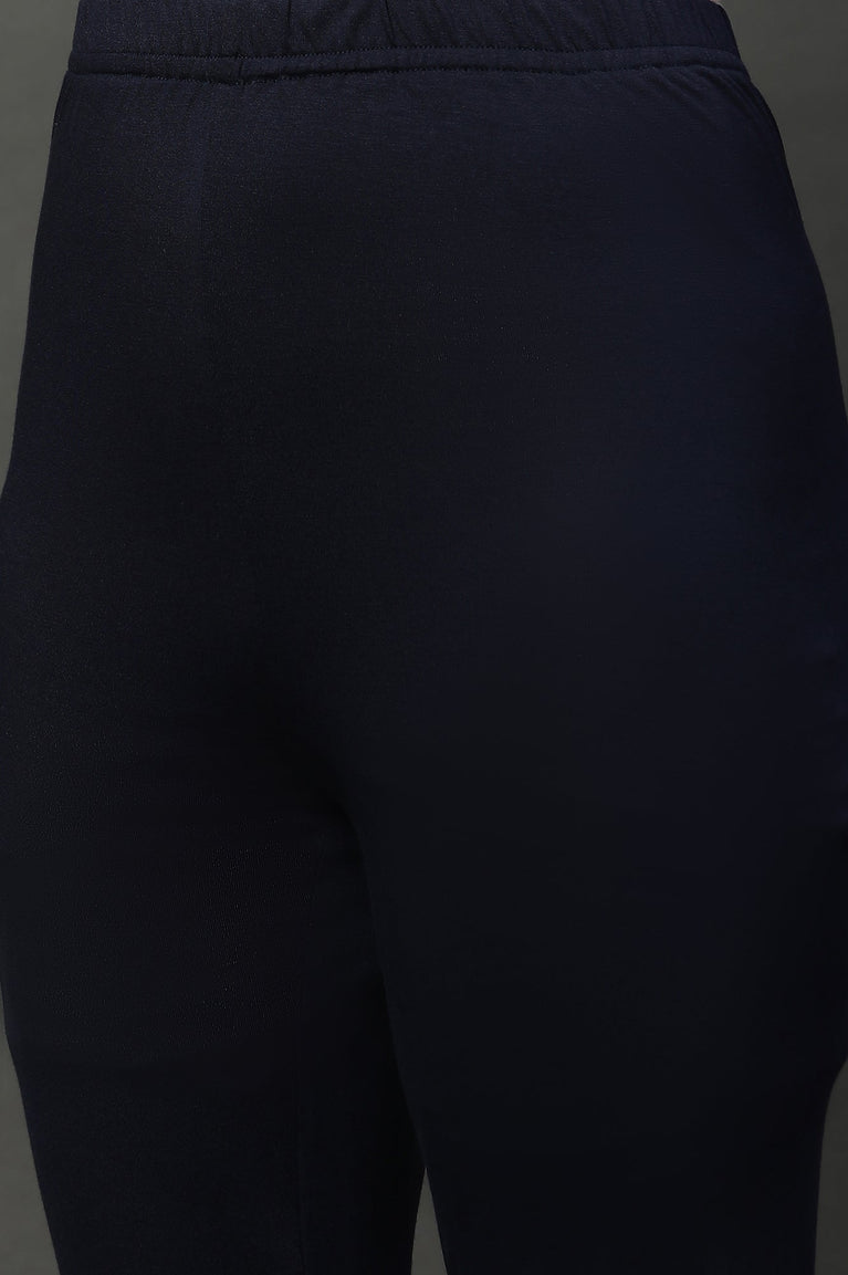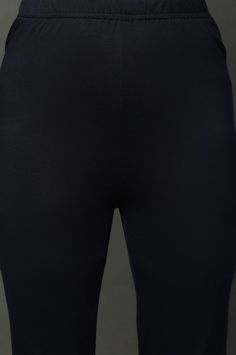 Denim Narrow Pants In Ankle Length Having Mid-Rise And Partially Elasticated Waistband. This Solid Trouser Has A Front Fly With Zipper And Button Closure Along With Front Patch Pockets For A Smart Look.