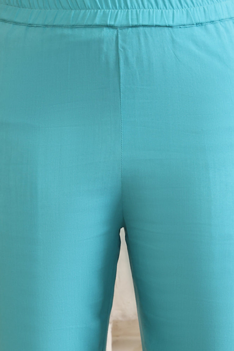 Blue Digital Printed Thread Embroidered Straight Modal Kurta, Palazzo and Dupatta Set