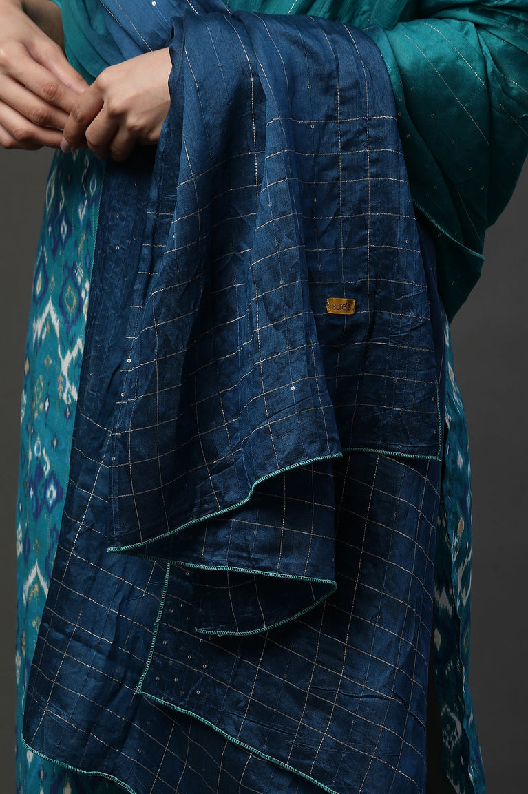 Blue Mandarin Neck Yarn-dyed Winter kurta