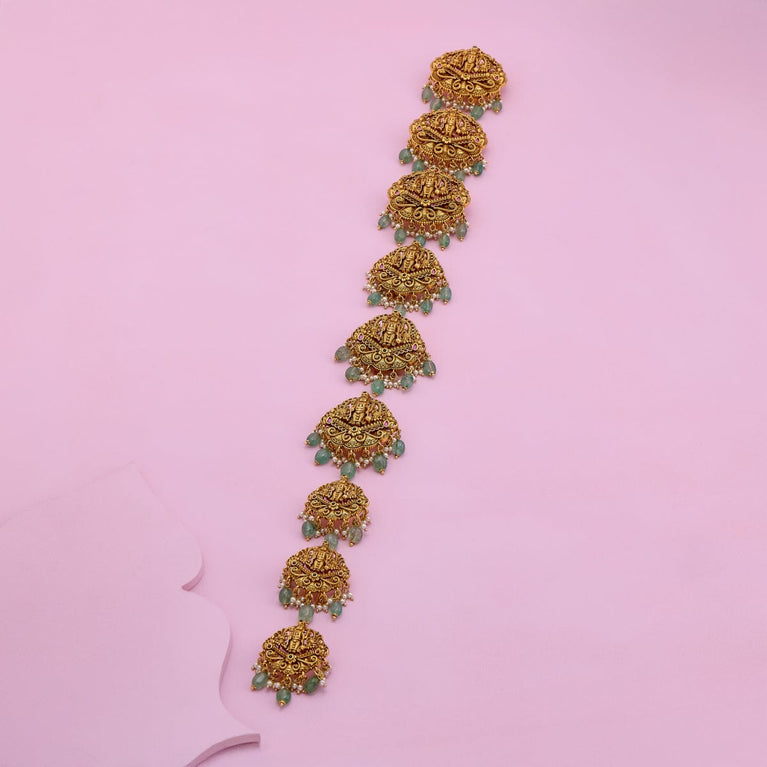 Kushal's Fashion Jewellery Festive Wear Antique ChainElevate your style with a simple and sleek look with Kushal’s collection of antique chains. Made of pure quality copper alloy, this chain is efficient for everyday use. This gold-polished jewellery will elevate your traditional attire. We have made this chain adjustable so you can wear it how you want it. Let Kushal's help you look gracious.